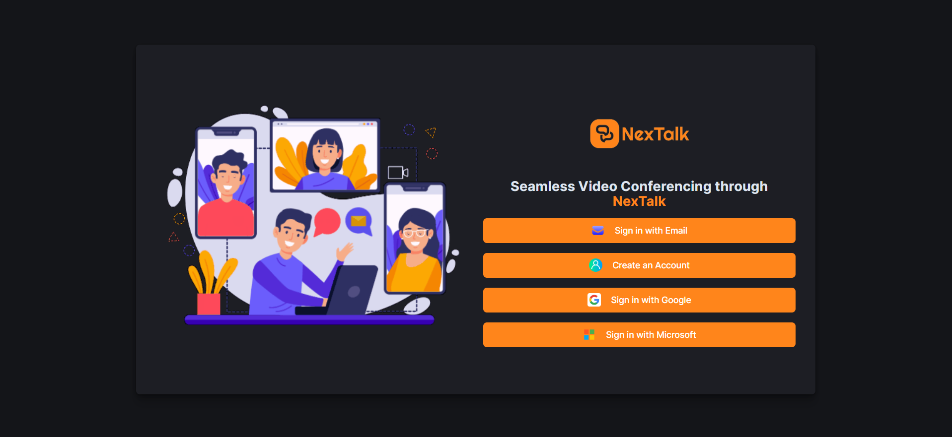 Introducing NexTalk, your all-in-one conference app powered by Firebase, Zego Cloud, and Elastic UI, seamlessly integrated with Redux Toolkit. Schedule and join meetings effortlessly, enjoying attractive features to connect with friends. With Microsoft and Google sign-in options, NexTalk ensures a secure and convenient experience for all your virtual gatherings. Elevate your conferencing with NexTalk's user-friendly interface and cutting-edge technology. Please ClickHereto explore the live project .